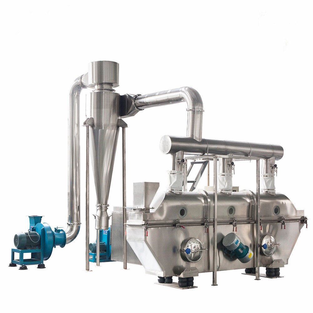 เครื่องอบแห้งฟลูอิไดซ์เบดแบบสั่นเป็นอุปกรณ์ทำแห้งแบบเข้มข้นที่มีจุดประสงค์พิเศษมักใช้สำหรับการอบแห้งขั้นสุดท้าย ของวัสดุ เนื่องจากการทำให้เป็นของเหลวของวัสดุได้รับความช่วยเหลือจากการสั่นสะเทือนทางกลในกระบวนการทำให้แห้ง ไม่เพียงแต่จะเป็นประโยชน์ต่อความปั่นป่วนของชั้นขอบและการเพิ่มความร้อนและการถ่ายเทมวล แต่ยังช่วยให้อุปกรณ์การอบแห้งทำงานภายใต้กลไกการไหลที่ค่อนข้างเสถียร สภาพอุปกรณ์นี้มีฟังก์ชั่นการอบแห้งที่ดี แต่ยังตามความต้องการของกระบวนการด้วยกระบวนการทำความเย็นวัสดุการคัดกรองและการลำเลียง ปัจจุบันมีการใช้กันอย่างแพร่หลายในน้ำตาล, ยา, ปุ๋ย, อุตสาหกรรมเคมี, พลาสติก, ผลิตภัณฑ์นม อุตสาหกรรมเกลือ อุตสาหกรรมเหมืองแร่และโลหกรรม โดยทั่วไปแล้วเทคโนโลยีนี้จะเติบโตเต็มที่และได้รับการจัดลำดับแล้ว