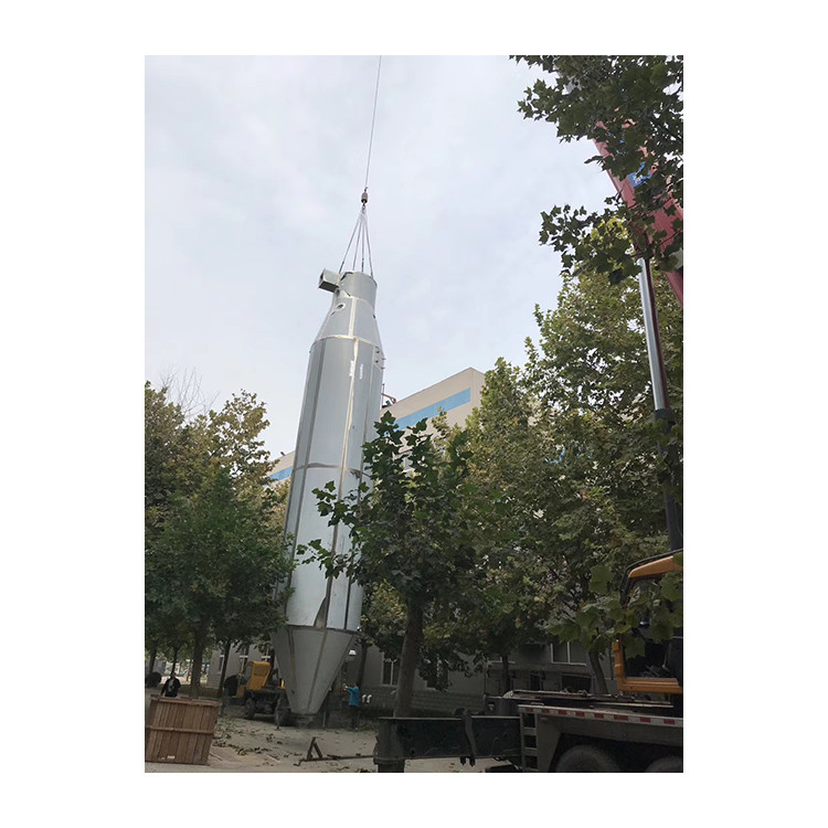 วัสดุของเหลวถูกสูบผ่านปั๊มไดอะแฟรมวัสดุที่เป็นของเหลวสามารถทำให้เป็นละอองขนาดเล็กได้แล้วลมร้อนจะพัดมารวมกันส่วนใหญ่ของวัสดุที่เป็นผงจะถูกรวบรวมจากทางออกของด้านล่างของหอคอยหลักสำหรับผงละเอียด เราจะยังคงเก็บรวบรวมโดยใช้เครื่องแยกแบบไซโคลนและตัวกรองถุงผ้าอย่างต่อเนื่อง