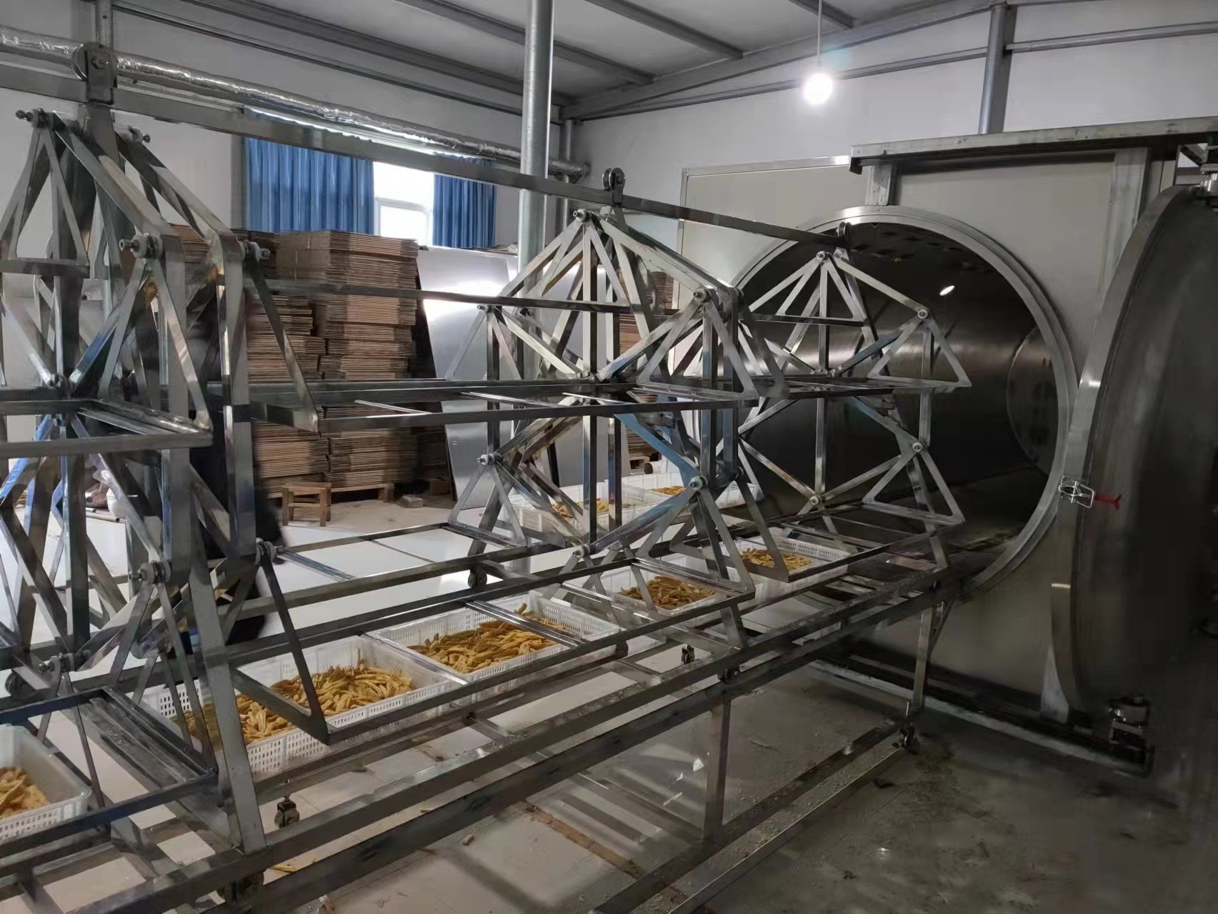 อุปกรณ์ทำแห้งสูญญากาศด้วยไมโครเวฟเป็นอุปกรณ์ประยุกต์พลังงานไมโครเวฟรูปแบบใหม่ที่รวมเทคโนโลยีพลังงานไมโครเวฟและเทคโนโลยีสูญญากาศมีข้อดีหลายประการในการทำให้แห้งด้วยไมโครเวฟและสุญญากาศ และเอาชนะข้อบกพร่องของวงจรการทำแห้งแบบสุญญากาศแบบธรรมดาและประสิทธิภาพต่ำในกระบวนการอบแห้งสามารถปรับปรุงประสิทธิภาพการทำงานได้ 4 ถึง 10 เท่าเมื่อเทียบกับวิธีการทั่วไปอุปกรณ์ทำแห้งแบบสุญญากาศด้วยไมโครเวฟเป็นอุปกรณ์ไฮเทคที่ครอบคลุมซึ่งรวมเอาเทคโนโลยีการประยุกต์ใช้พลังงานไมโครเวฟและเทคโนโลยีการควบแน่นของเทคโนโลยีการทำแห้งแบบสุญญากาศและเทคโนโลยีการลดความชื้นส่วนใหญ่ใช้สำหรับสารสกัดจากยาจีน ยาเม็ด เม็ด ซอสเนื้อ ซอสไก่ และผักในอาหารวัสดุนี้คือการทำให้แห้งที่อุณหภูมิต่ำ ซึ่งมีลักษณะของความเร็วในการอบแห้งที่รวดเร็ว ประสิทธิภาพเชิงความร้อนสูง อุณหภูมิการอบแห้งต่ำ คุณภาพการอบแห้งสูง ต้นทุนต่ำ และการทำงานของอุปกรณ์ที่เสถียรเป็นอุปกรณ์ทำแห้งคุณภาพสูง รวดเร็ว และอุณหภูมิต่ำ