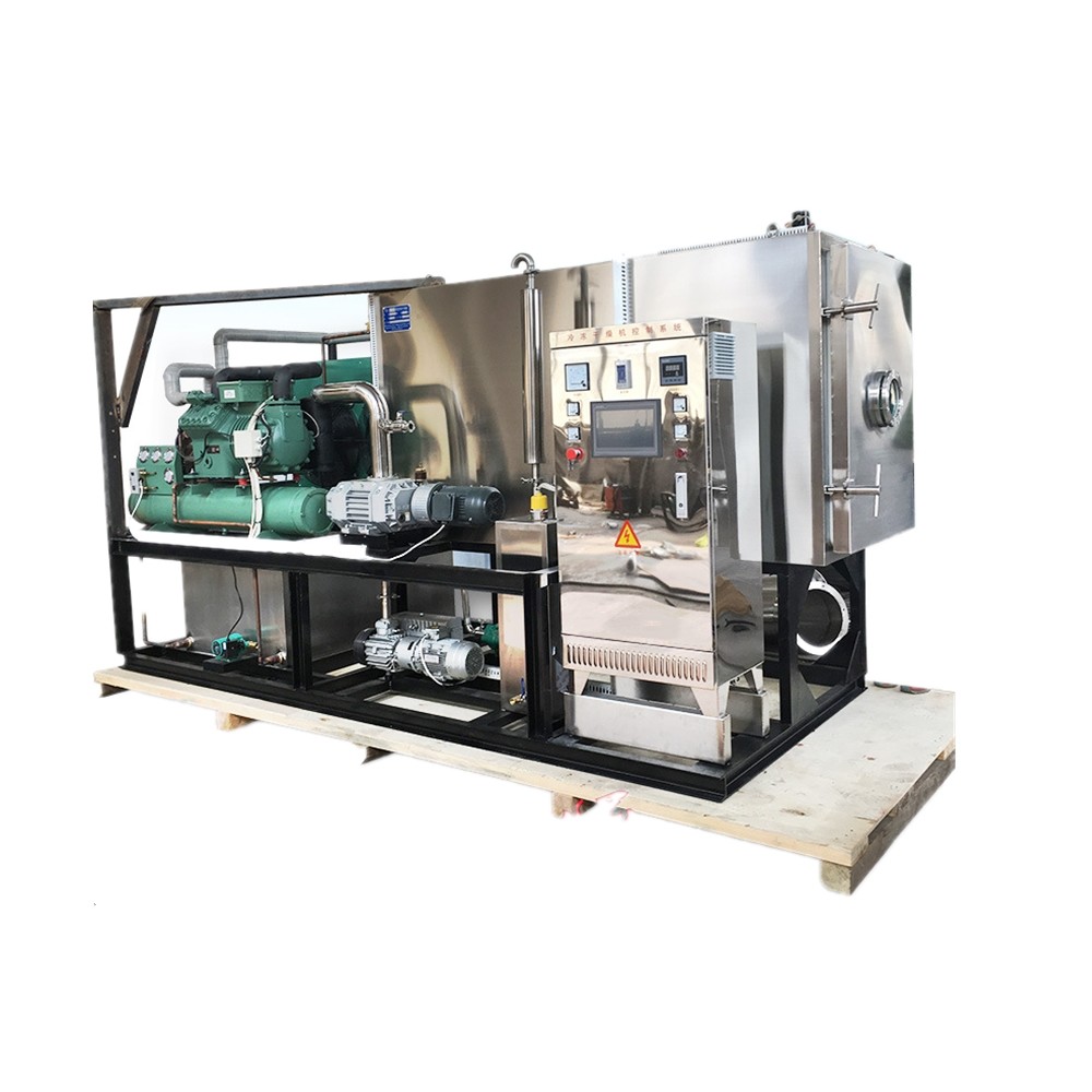 เครื่องทำแห้งแช่แข็งประกอบด้วยระบบทำความเย็น ระบบสุญญากาศ ระบบทำความร้อน และระบบควบคุมเครื่องมือวัดทางไฟฟ้าส่วนประกอบหลักคือเตาอบ คอนเดนเซอร์ หน่วยทำความเย็น ปั๊มสุญญากาศ อุปกรณ์ทำความร้อน/ทำความเย็นหลักการทำงานของมันคือการทำให้วัสดุถูกแช่แข็งที่อุณหภูมิต่ำกว่าที่กำหนด จากนั้นภายใต้สภาวะสุญญากาศ สถานะของแข็งของน้ำ (น้ำแข็ง) จะถูกระเหิดเป็นไอน้ำโดยตรงและปล่อยออกเพื่อรับของแห้ง
